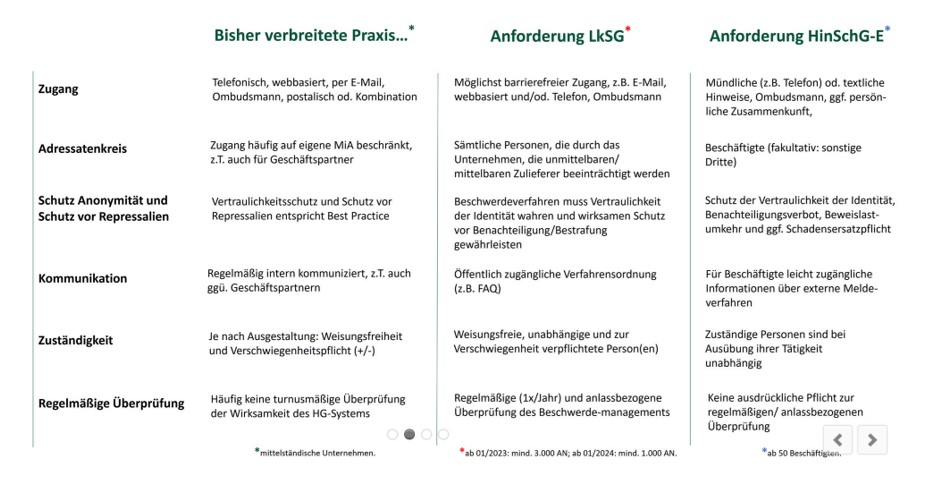 Natürlich ist die Ausgestaltung des Beschwerdemanagements von der Unternehmensgröße abhängig. Sehen Sie anbei eine Gegenüberstellung des „Beschwerdemanagements in der Lieferkette“ je nach Unternehmensgröße auf der „PARK-Wirtschaftsstrafrechts-Internetseite“: https://www.park-compliance.de/aktuelles/beschwerdemanagement-in-der-lieferkette.html